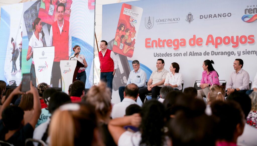 Gómez Palacio, Dgo.– Miles de familias fueron beneficiadas con la entrega de 2 mil 500 Tarjetas Madre en su modalidad alimentaria, un apoyo directo para mujeres que no cuentan con otro tipo de programa social. El gobernador Esteban Villegas Villarreal encabezó la entrega en la Velaria de la Feria de Gómez Palacio, acompañado de la presidenta del DIF Estatal, Marisol Rosso Rivera, y de la presidenta municipal, Betzabé Martínez Arango, en un acto que refrenda el compromiso del Gobierno del Estado con las mujeres y familias duranguenses.
